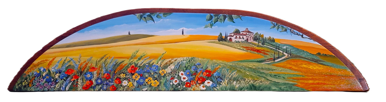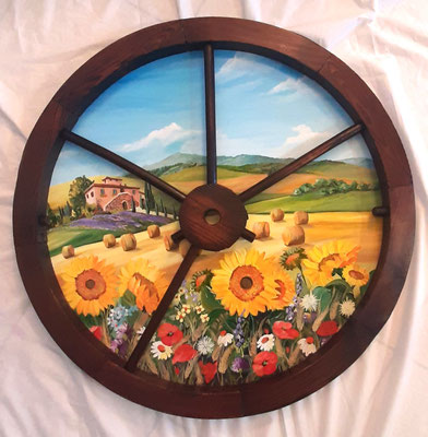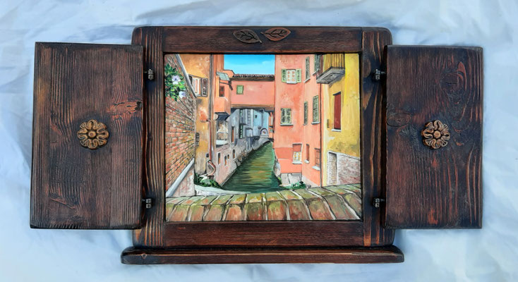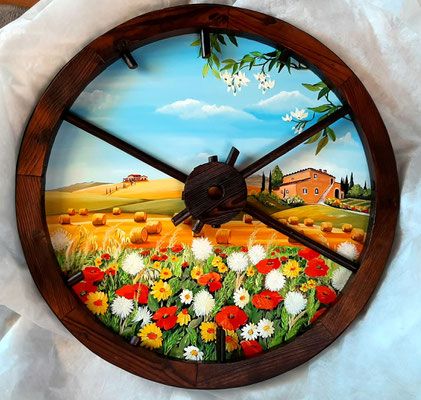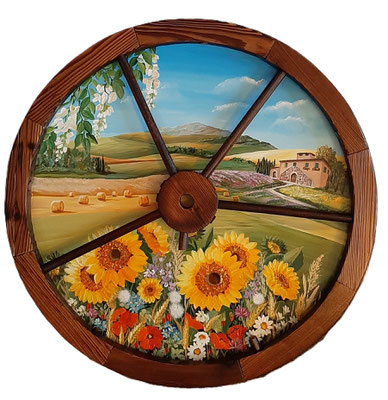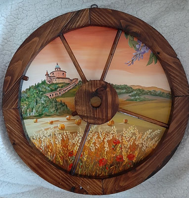 … se ami gironzolare per mercatini dell'usato, mercati dell'antiquariato o semplicemente curiosare nelle sagre di paese…, ricorda che un vecchio oggetto può avere una seconda vita. Il tagliere che vedi in foto è oggi in bella mostra sulla parete di una cucina… Antonio e Marta non avrebbero mai pensato che il tagliere di nonna Emma dimenticato in soffitta potesse risplendere di colori nuovi ma, soprattutto, di tanti ricordi…